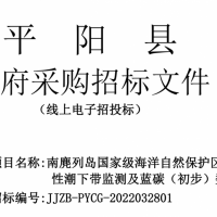 南麂列島國家級海洋自然保護區生物多樣性潮下帶監測及藍碳(初步)數字平臺的公開招標
